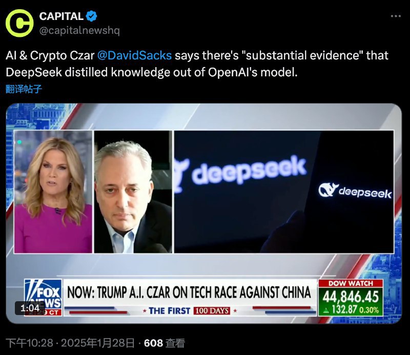 中国人工智能初创公司DeepSeek在过去一周成为硅谷热议的对象,并触发了本周一美国科技股“崩盘”。1月29日,OpenAI最新称,它发现有证据表明中国人工智能初创公司DeepSeek使用其专有模型来训练自己的开源模型,并暗示这可能违反了OpenAI的服务条款。