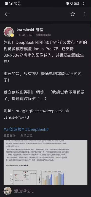 人工智能社区Hugging Face显示,DeepSeek刚刚发布了开源多模态人工智能(AI)模型Janus-Pro。